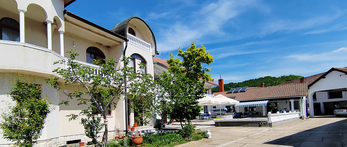 Dvorište vile Jovana podrazumeva veliki ograđen popločen prostor gde možete parkirati vaša prevozna sredstva.