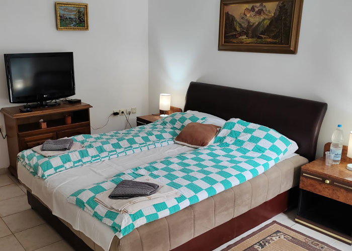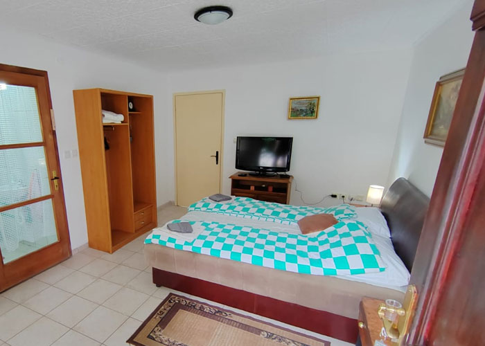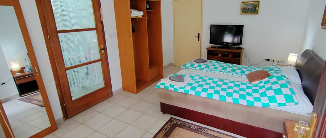 Soba 04 je dvokrevetna soba u prizemlju vile. Sadrži veliki francuski ležaj sa noćnim stoćićima, LCD televizorom, odvojenim toaletom i kupatilom kao i predsoblje i garderober.